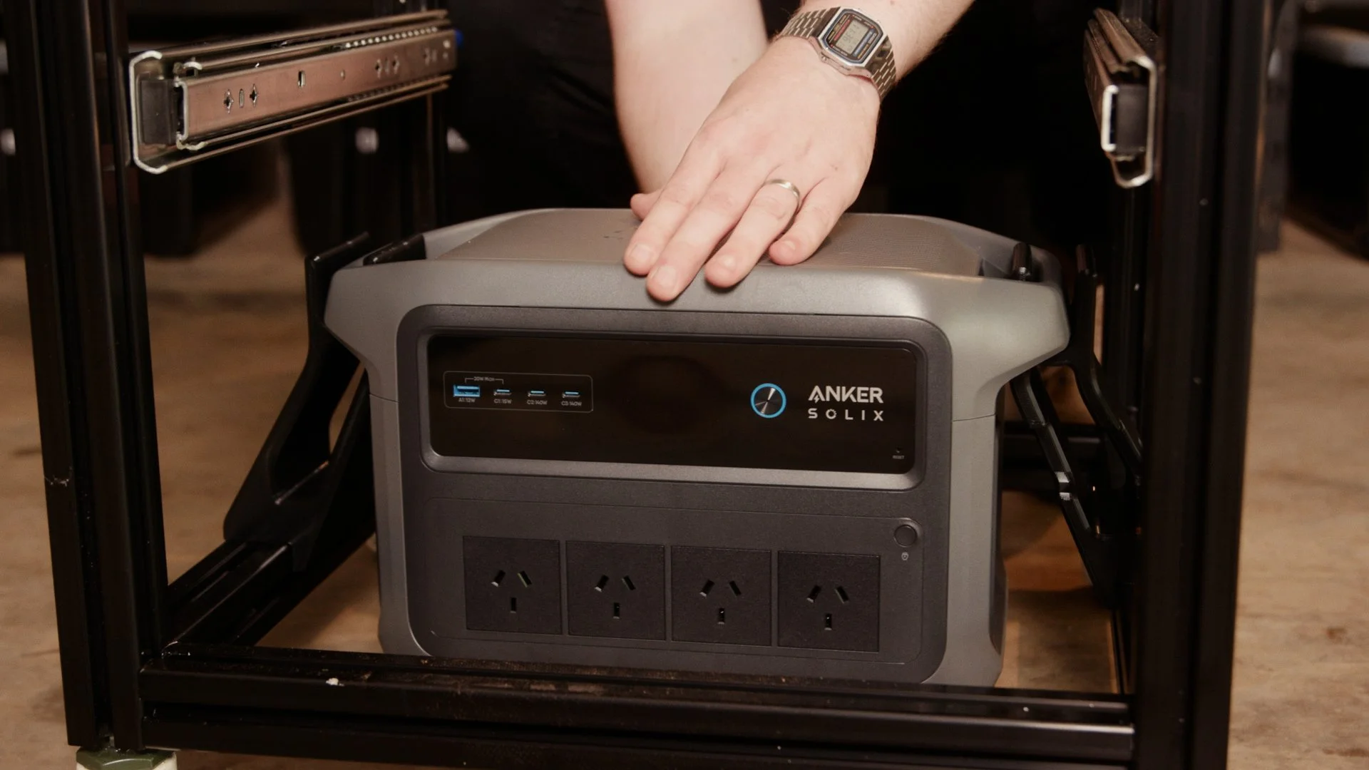 Conveniently, I had a good excuse to solve that problem by adding a portable power station to the base of the tower as a counterweight. Aside from improving stability, it also gives the printers UPS protection, meaning a short power outage won’t ruin a print.