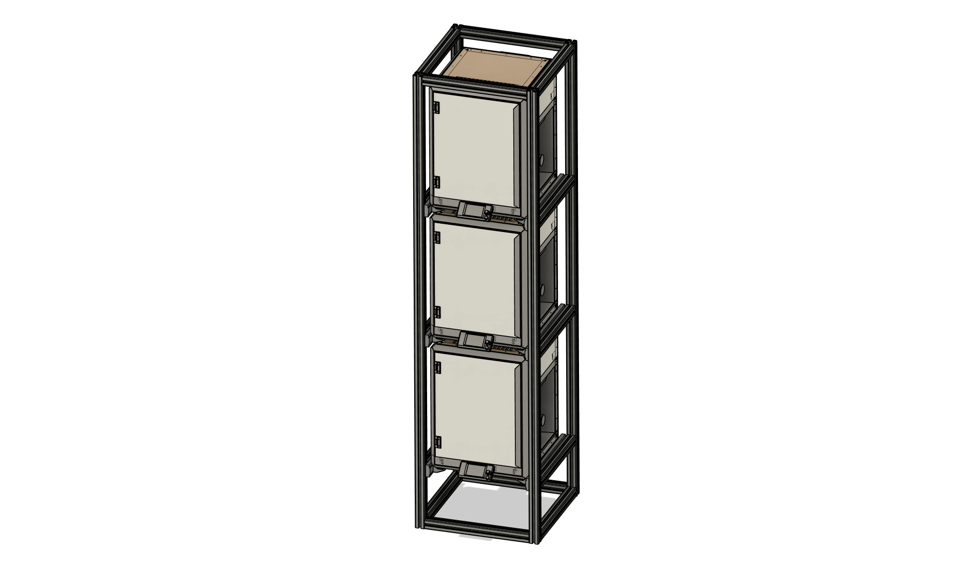 Instead of spreading printers across a workbench, I designed a three-tier printer tower, stacking the machines on top of each other.